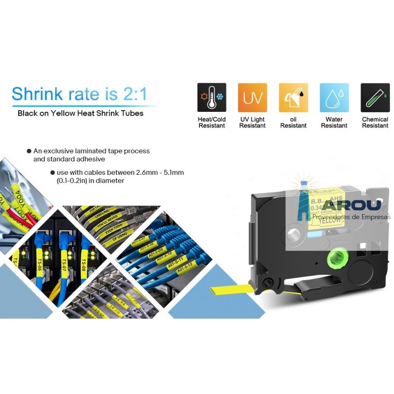 CINTA COMPATIBLE BROTHER TERMOCONTRAIBLE AR HS-611 ( 6 mm. x 1,5 metros) AMARILLO
