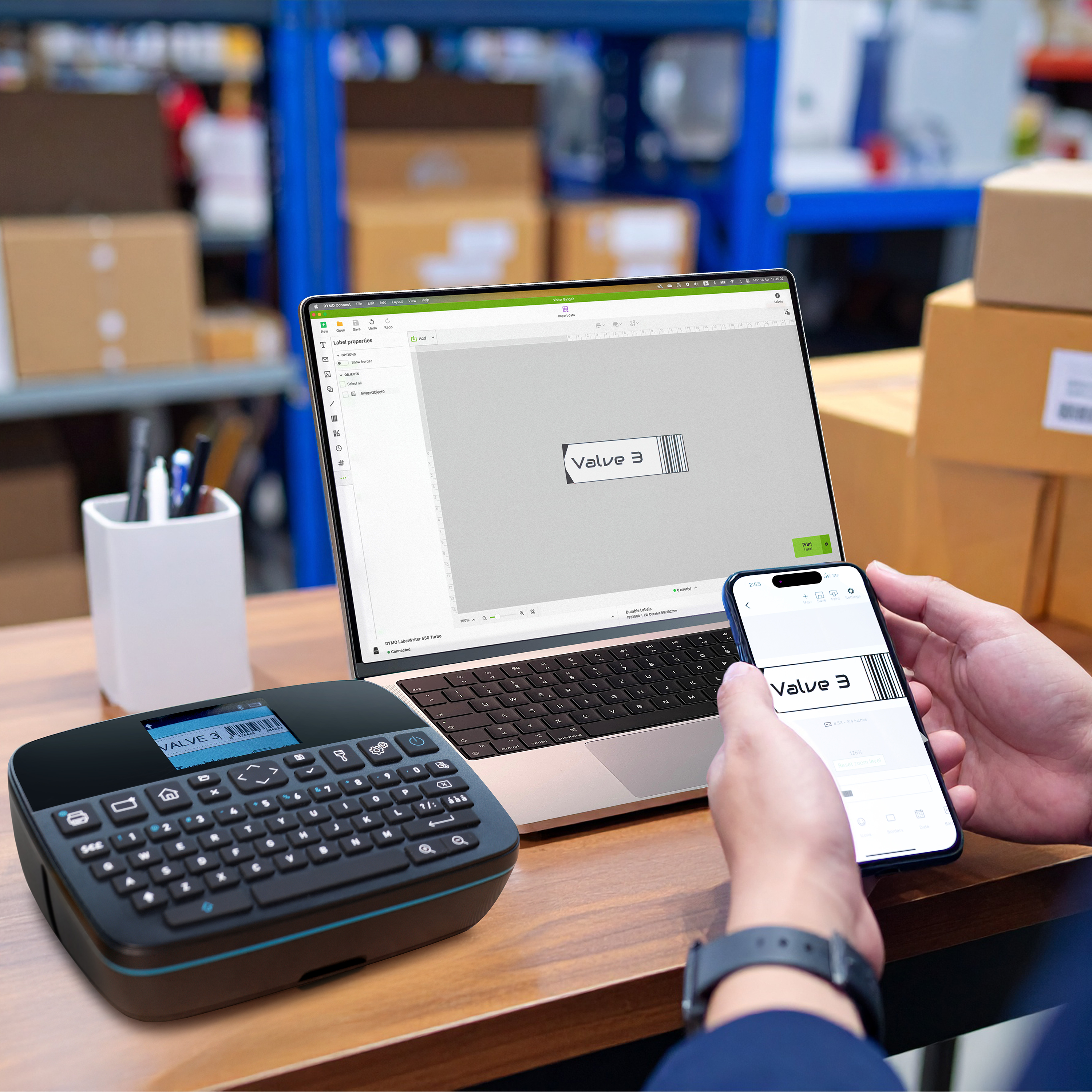 LabelManager Executive 640 CB admite las opciones de cintas D1 Estándar y Duradera con anchos que van de 6 mm a 24 mm (1/4" a 1"), con una amplia gama de colores y acabados. Disfrute de la comodidad del etiquetado portátil con LabelManager Executive 640 CB. Diseñada para un uso dinámico, su batería recargable de iones de litio y su diseño compacto garantizan la creación de etiquetas sin esfuerzo dondequiera que esté. Su empuñadura texturizada ofrece comodidad durante un uso prolongado, lo que refleja nuestro compromiso con la excelencia ergonómica. Con una pantalla de alta resolución para una legibilidad inigualable y un menú de navegación intuitivo y claro para una accesibilidad avanzada, LabelManager Executive 640 CB establece un nuevo estándar en la creación y la personalización de etiquetas. Además, la interfaz fácil de usar de LabelManager Executive 640 CB y las opciones de doble conectividad, como la tecnología Bluetooth® Low Energy y USB-C, le permiten guardar un número prácticamente ilimitado* de etiquetas personalizadas con las aplicaciones de software para móvil y de escritorio de DYMO®, consiguiendo un flujo de trabajo optimizado y sin necesidad de sincronizar el dispositivo. Para organizar su espacio de trabajo o para trabajar sobre el terreno, LabelManager Executive 640 CB le proporciona una eficacia y una precisión sin precedentes en lastareas de etiquetado.